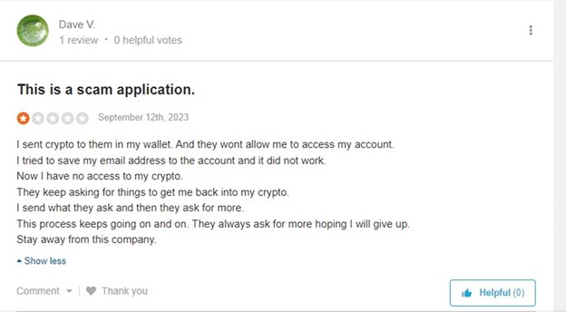Это мошенническое приложение . Держитесь подальше от этой компании. Примерно такое сообщение от жертв вы увидите, если изучите отзывы на Sitejabber.
